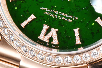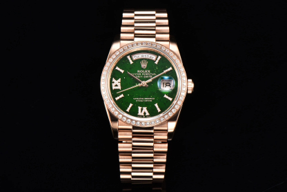 ロレックスは、卓越した時計製造の基準を体現するスイスを代表する高級時計ブランドです。1956年に誕生したデイドゥエイトは、12時位置のアーチ型ウィンドウで曜日を完全表記する世界初のカレンダー腕時計として歴史に名を刻み、以来、多くのリーダーやビジョナリーに愛用されてきました。本モデルは、18Kゴールド、18Kホワイトゴールド、18Kエバーローズゴールド、または950プラチナといった貴金属のみで仕上げられ、専用設計のプレジデントブレスレットと相まって、比類なき存在感を放ちます。曜日表示は26言語から選択可能で、真のグローバルかつパーソナルな時計としての地位を確立しています。卓越した歴史的価値:ロレックスのフラッグシップモデルとして、1956年の登場以来「大統領の時計」と称され、世界中の政界・経済界のリーダーたちに選ばれてきた、成功と威信の象徴です。独創的な機能美:12時位置に世界初のフルスペル曜日表示ウィンドウを配置し、日付とともに「ミッドナイトミラクル」と呼ばれる瞬切り機構で変更する、機能性と美学を見事に融合させたデザインが特徴です。最高峰の素材と技:ケースからブレスレットに至るまで、18K金や950プラチナなどの貴金属のみを使用。エメラルドカットダイヤモンドや天然のパールマザーなど多様な文字盤と組み合わせられ、ロレックスが追求する微細なディテールへのこだわりが光ります。先端技術を結集した高性能ムーブメント:完全自社製の3255型機械式ムーブメントを搭載。クロノエネジー脱進機やパラクロムひげぜんまいなど数々の特許技術を採用し、約70時間のパワーリサーブと超々天文台証明を取得した卓越した精度と信頼性を実現しています。象徴的なプレジデントブレスレット:1956年のデイドゥエイトの発売とともに登場した、三連の半円形リンクが特徴の専用ブレスレット。貴金属製で、内蔵されたセラミック部品により耐久性と柔軟な着用感を両立し、その存在感と快適さは時計の風格をさらに高めます。